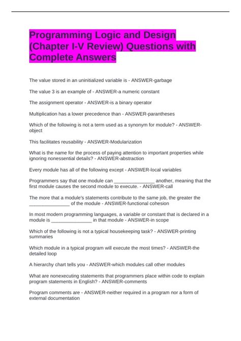XHS - Reading Online PROGRAMMING LOGIC AND DESIGN REVIEW ANSWERS Paperback BookBoon